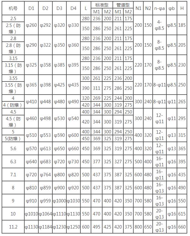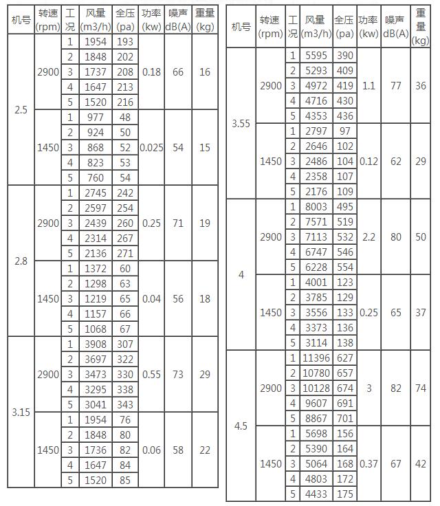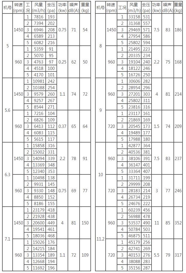 二、CDZ型低噪声轴流风机性能参数表