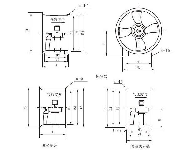 三、CDZ型低噪声轴流风机外形及安装尺寸