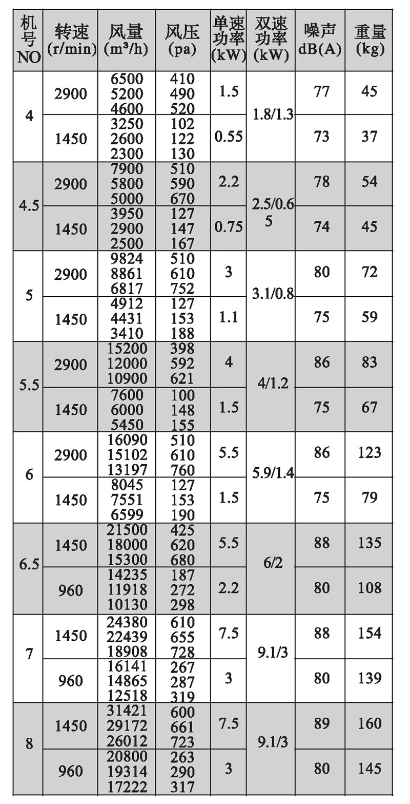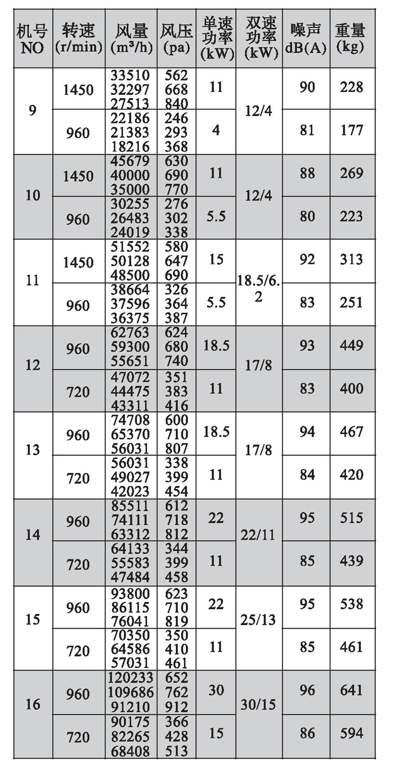 注:双速风机重量参考同号中高速风机的重量。