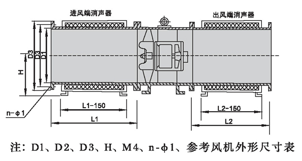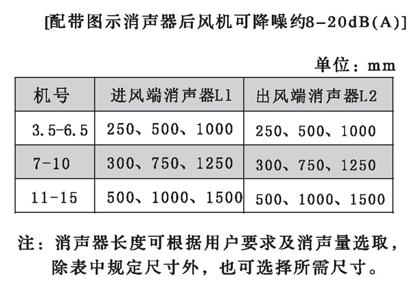 五、HTF型风机配带消声器外形尺寸表