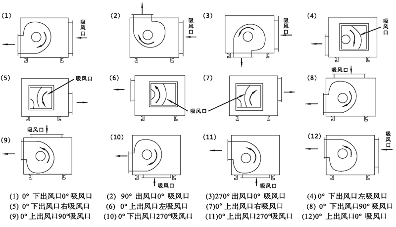 四、HTFC型风机进出风口位置编号表