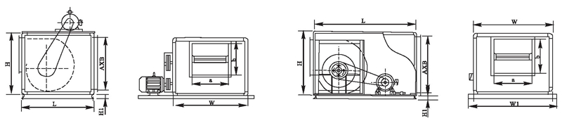 本系列产品分为A型和B型两种,电动机安装在箱体外的为A型,经耐高温试验,在烟气温度大于280七高温情况下,能连续运转30分钟以上,达到消防排烟之目的,配用双速电机后,既可在低速通风换气,又可在高速时消防排烟,为一机两用:电动机安装在箱体内的为B型,一般作送排通风使用。