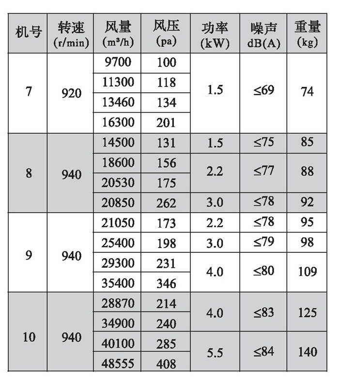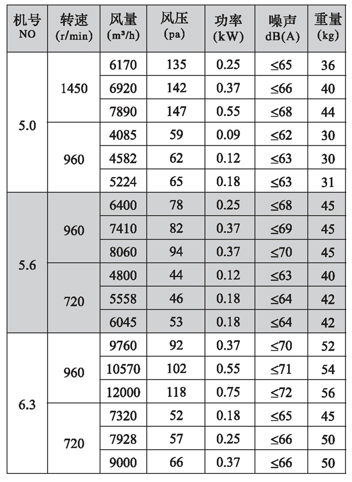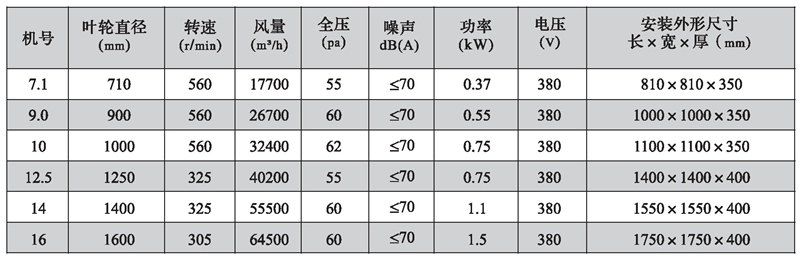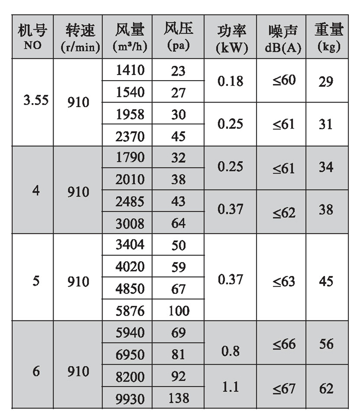 三、DFBZ型风机外形尺寸表(单位: mm)